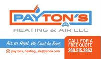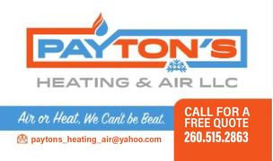 Payton's Heating & Air LLC is a locally owned company in Fort Wayne, Indiana with over 14 years of experience in HVAC service, installation, new home construction, and light commercial applications. We are licensed and insured, providing upfront pricing with no sales gimmicks. Our top priority is customer satisfaction and professional quality service.